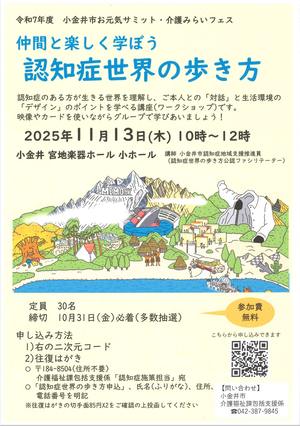 令和7年11月12日(水曜)と令和7年11月13日(木曜)の2日間に渡って開催される「令和7年度お元気サミット・介護みらいフェス」にて、「認知症世界の歩き方」ワークショップを行います。