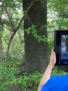 樹木を決めたら、選んだ樹木の種類が何かを、タブレット端末で確認できる樹木の資料を見たり、前回の授業で学んだ内容を思い出したりしながら考えました。