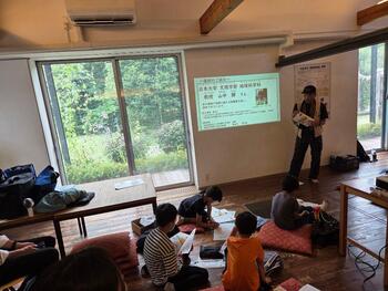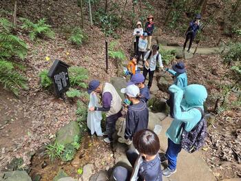 当日は環境楽習館で座学を実施した後、滄浪泉園緑地に移動し、水琴窟の見学、水質、