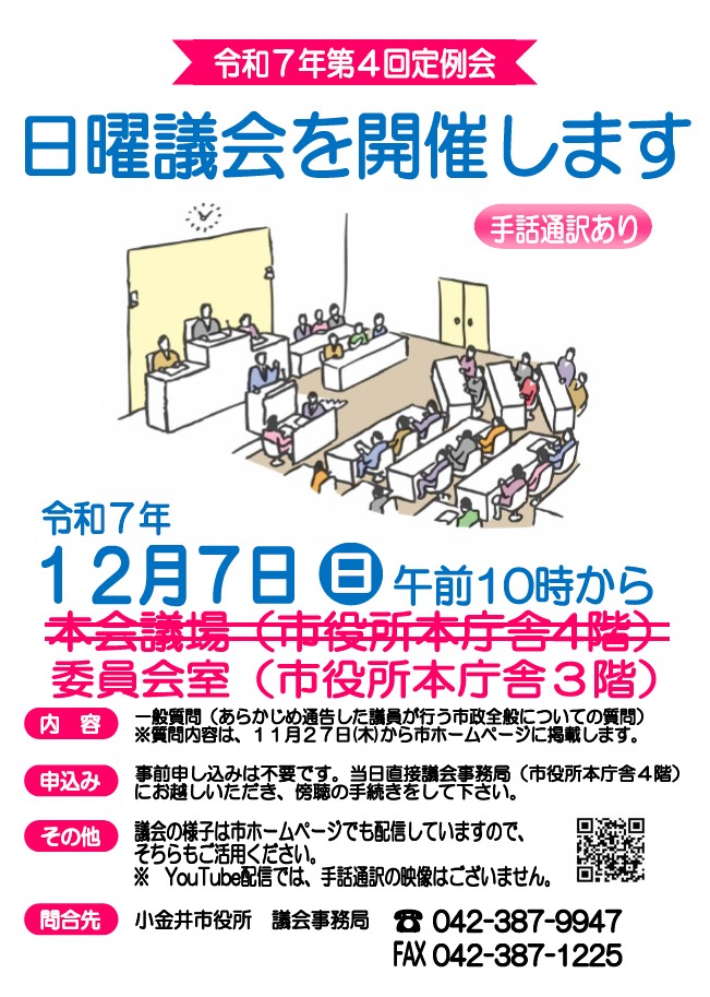 市議会では、平日に仕事などで傍聴に来られない方にも、会議がどのように行われているかを知っていただくため、日曜議会を開催しています。