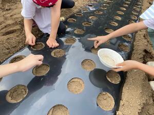 子どもたちと一緒にピザを作って食べ、農地では種まき体験も。土に触れると心が落ち着きます。