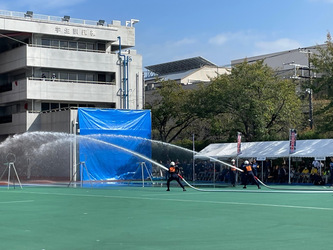 第53回東京都消防操法大会に、北多摩地区を代表して小金井市消防団第3分団が出場するため、渋谷区にある消防学校へ応援に駆け付けました。