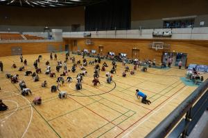 | 8 | ボール運びレース | 56 | 1 | 56 | 15 | ラグビーボールをスティックで運び、4つのフラフープをくぐり、対面のチーム仲間にタッチし、交代。これを繰り返す。 | |