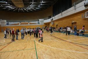 次に、軽スポーツ部長からのルール説明があり、準備運動(いきいきクラブ体操)を経て、ゲームスタートです。