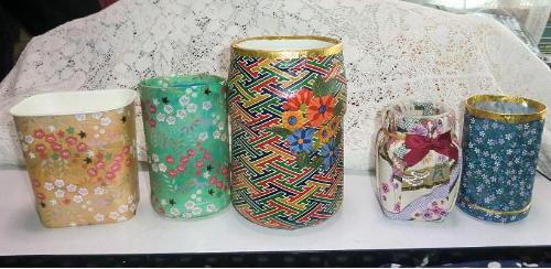 不要となったペットボトルやビンなどをラッピングして、小物入れとして活用しています。
